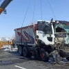 Ağrı’da bir kamyon, sürücüsünün direksiyon hakimiyetini kaybetmesi sonucu dereye uçtu.