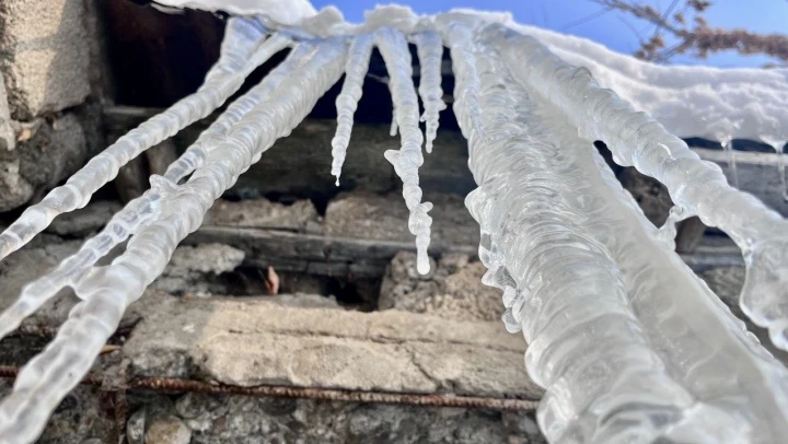 Ağrı'da dondurucu soğuklar nedeniyle evlerin çatılarında dev buz sarkıtları oluştu.