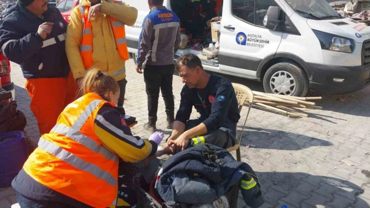 Ekipte görevli paramedik Süheyla Erol çalışmalarda görev alan arama kurtarma personelinin de zaman zaman yoğun çalışmaya bağlı tansiyon düşmesi gibi durumlarla karşı karşıya kaldığını belirterek onlara da ilk müdahaleyi gerçekleştirdiklerini söyledi. Enkazda meydana gelen yaralanmalara da müdahale eden Antalya Büyükşehir Belediyesi paramedik ve hemşireleri pansuman ve dikiş gibi ilk müdahaleleri gerçekleştirdi.