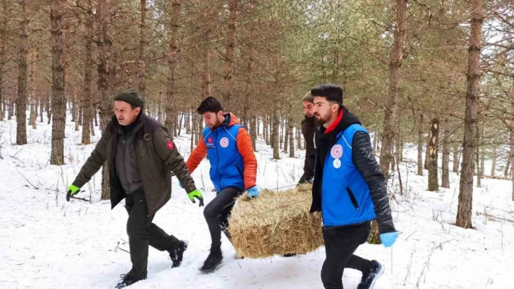Ardahan'da, Orman ve Su İşleri Şube Müdürlüğü ekipleri ve Gençlik Merkezi gönüllülerince, kar yağışı nedeniyle yem bulmakta güçlük çeken yabani hayvanlar için iki farklı noktaya yem bırakıldı.