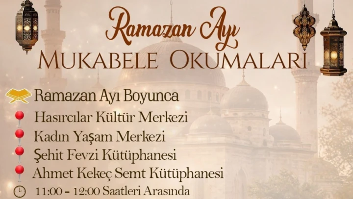 Battalgazi Belediyesi, Ramazan ayının manevi atmosferini vatandaşlarla birlikte yaşatmak amacıyla geleneksel 'Mukabele Okumaları' programını bu yıl da hayata geçiriyor. Kültür, Sanat ve Sosyal İşler Müdürlüğü koordinesinde düzenlenecek program kapsamında başvuru süreci başladı. Mukabele, Ramazan ayı boyunca Kur'an-ı Kerim'in her gün bir bölümünün (cüz) karşılıklı olarak okunması esasına dayanan ve asırlardır sürdürülen bir ibadet geleneği olarak biliniyor. Bu gelenekle Ramazan ayı süresince Kur'an-ı Kerim baştan sona okunmuş oluyor. Ramazan ayı boyunca gerçekleştirilecek Mukabele Okumaları Hasırcılar Kültür Merkezi, Gelinciktepe Kadın Yaşam Merkezi, Şehit Fevzi Kütüphanesi ve Ahmet Kekeç Semt Kütüphanesi'nde yapılacak. Programların her gün saat 11.00 ile 12.00 arasında gerçekleştirileceği bildirildi.