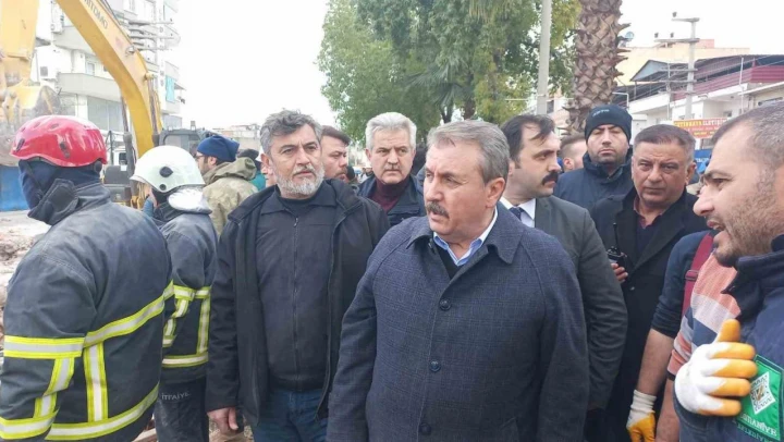 BBP Genel Başkanı Mustafa Destici, Osmaniye'de artçı sarsıntı sebebiyle öğle saatlerinde yıkılan 3 katlı binanın enkaz alanında çalışmaları inceledi.