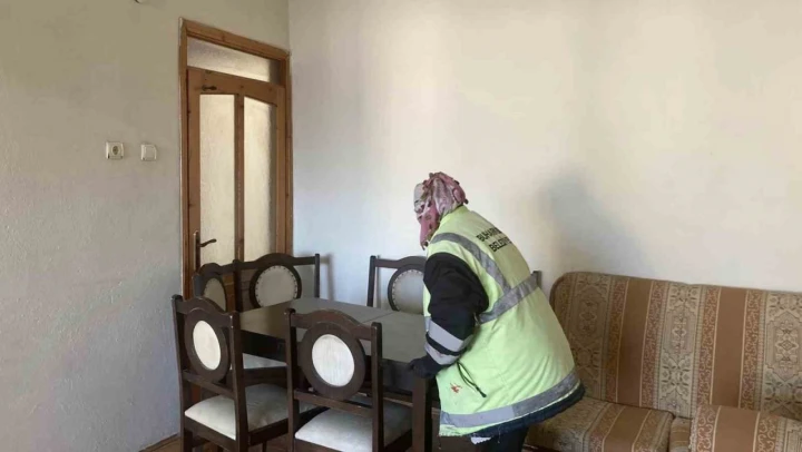 Kahramanmaraş'ta meydana gelen yıkıcı depremlerin ardından Aydın'ın Buharkent ilçesinde hayırsever vatandaşların depremzedeler için tahsis ettiği evleri belediye ekipleri temizliyor.