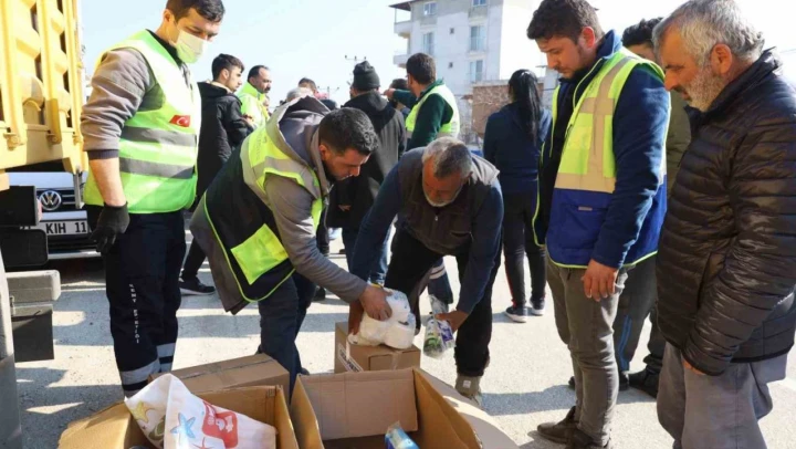 Türkiye genelinden hava ve kara yolu ile gelen tüm yardım malzemelerinin Hatay'da ihtiyaç sahiplerine ulaştırılması görevini üstlenen Bursa Büyükşehir Belediyesi, Antakya ilçesinin Karaali Mahallesi'nde de depremzedelerin yüzünü güldürdü.