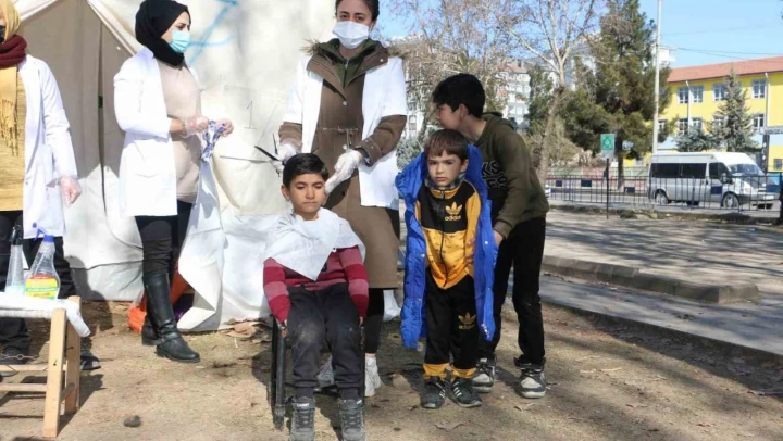 Çadır kentlerde 12 kişilik kuaför ekibi depremzedeler için seferber oldu