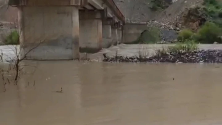 Hakkari'nin Çukurca ilçesinde aşırı yağışlar hayatı olumsuz etkilerken toprak kayması yaşandı ve dere yatağında balçık oluştu.