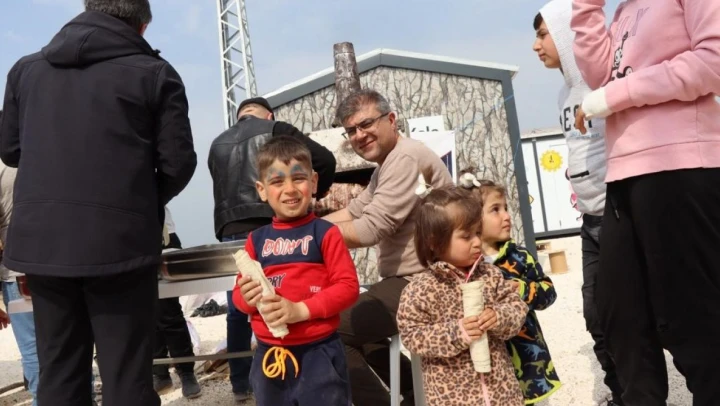 İş insanı Fuat Demir,' 6 Şubat'ta meydana gelen asrın felaketi olarak da adlandırdığımız afat sonrası Hatay'da Çadırkentte okula giden öğrencilerimize Oltu cağ kebabı ikram etmek için geldik. Burada gördük ki ciddi manada devletimizin, milletimizin dayanışması var. Amacımız çocuklarımıza biraz moral vermek, kendilerini motive etmek istedik. Her hafta gelip buradaki çocuklara cağ kebabı ikram edeceğiz. Ben bütün hayırseverlerin burada haftada bir gün bir etkinlik düzenlemelerini istiyorum. Ülkemizin başı sağ olsun, depremzedelerimize de geçmiş olsun diliyorum' dedi.