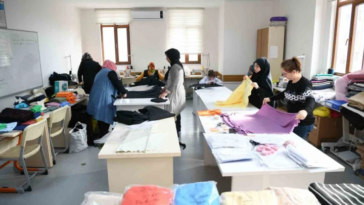 Çayırovalı kadınlar, depremzedeler için battaniye ve eşofman takımı üretiyor.