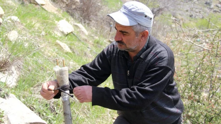 Tunceli'nin Çemişgezek ilçesinde yaşayan Önder Altan, 36 yıldır doğada kendiliğinden büyüyen verimsiz yaban ağaçlarını aşılayarak verimli hale getiriyor.