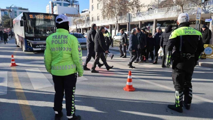Elazığ'da İl Emniyet Müdürlüğü Trafik Denetleme Şube Müdürlüğü ekipleri tarafından 'Önce Yaya' uygulaması yapıldı.
