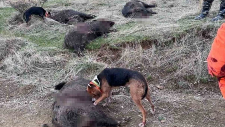 Av turizmi kapsamında avcılar, Elazığ'da dağlık alanlarda sürü halinde yaban domuzu avladı. Domuzlardan birinin yaklaşık 250 kilo ağrılığında olması dikkat çekti.