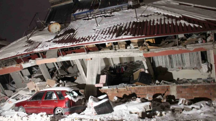 Kahramanmaraş'ın Elbistan ilçesinde meydana gelen depremden geriye yıkılmış ve hasar görmüş binalar kaldı.