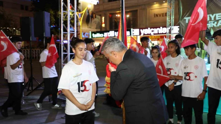 15 Temmuz şehitleri için Türk bayrakları ile 2 bin 500 metre koşan sporcular, koşunun sonunda ellerinde taşıdıkları sancağı Vali Mehmet Makas'a teslim ettiler. Sporcuları tebrik eden Vali Makas, günün anısına sporculara birer sertifika verdi.