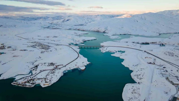 Yağan karla birlikte beyaz örtüye bürünen Erzincanın Kemah ilçesi, Çağlayan Beldesinde bulunan Girlevik Şelalesi ve Ekşisu Mesire alanı güzel görsel oluşturdu.