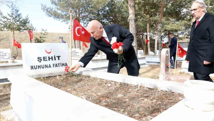Başkan Sekmen ve protokol üyeleri, Havuzbaşı'ndaki törenin ardından Karskapı Şehitliği'ne geçerek aziz şehitlerimizin kabirlerine karanfil bıraktı.