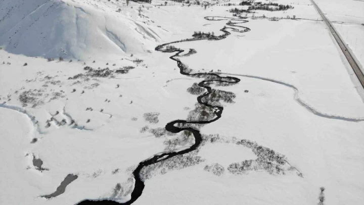 Yaz aylarında etrafını saran sarı çiçeklerle uzayıp giden menderesler, kış aylarında ise karlı dağlar arasında dümdüz ovanın içinde kıvrılıp uzayarak muhteşem manzara oluşturuyor. Bembeyaz kar örtüsünün arasından süzülen menderes kıvrımlarının oluşturduğu kış güzelliği ise havadan görüntülendi.