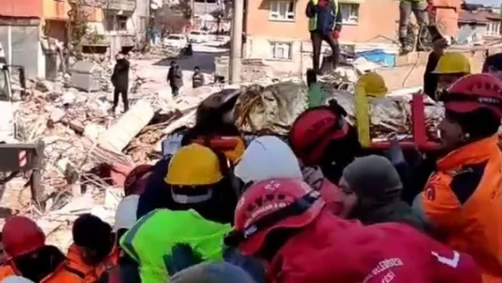 Hatay Antakya'da depremden 129 saat sonra, hamile olduğu öğrenilen bir kadın, İzmir Büyükşehir itfaiyesi ekipleri tarafından enkazdan çıkarıldı.