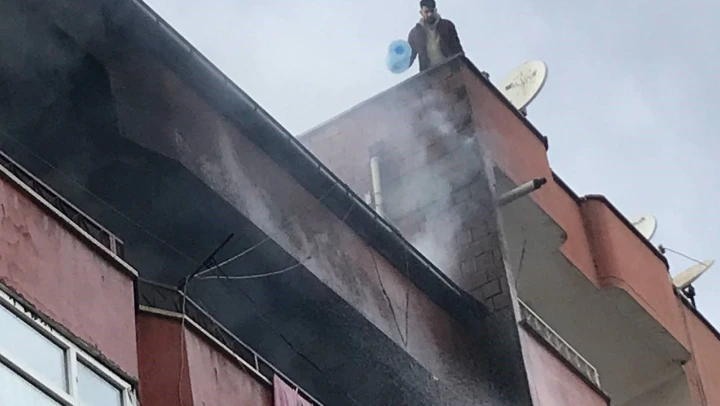 Iğdır'da bir binanın 4. katında çıkan yangın çatıya da sıçrarken, paniğe neden oldu. Bir vatandaşın yangına su bidonu ile müdahalesi ise görenleri şaşırttı.