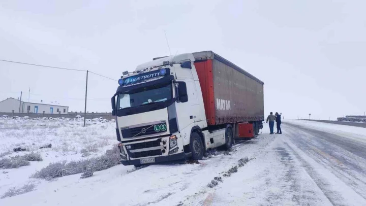 Iğdır'da 3 gündür etkili olan kar yağışı kazayı da beraberinde getirdi, bir tır şarampole yuvarlanmaktan son anda kurtuldu.