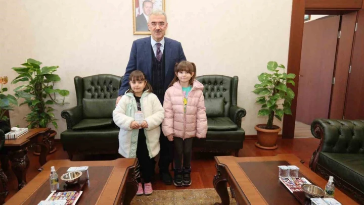 Eskişehir'de öğrenim gören ilkokul öğrencileri Mihrimah Demir ve Eslem Kocayıldız, biriktirdiği 210 TL harçlığı depremzedelere göndermesi için Vali Ayyıldız'a teslim etti.