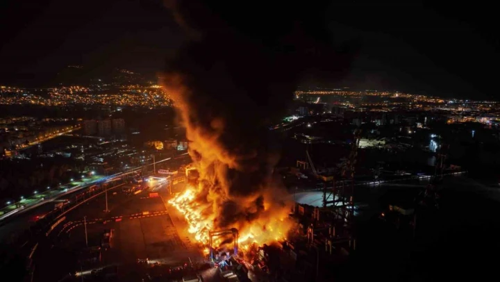 İskenderun Limanı'ndaki yangın havadan görüntülendi