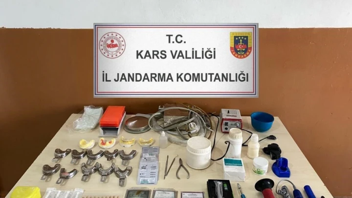 Kars'ta jandarma ekipleri tarafından yol kontrol faaliyetinde durdurulan bir araçta yapılan aramada dişçilik üzerine çok sayıda belge ve malzeme ele geçirildi. Sahte diş doktorluğu yaptığı anlaşılan şahıs yakalandı.