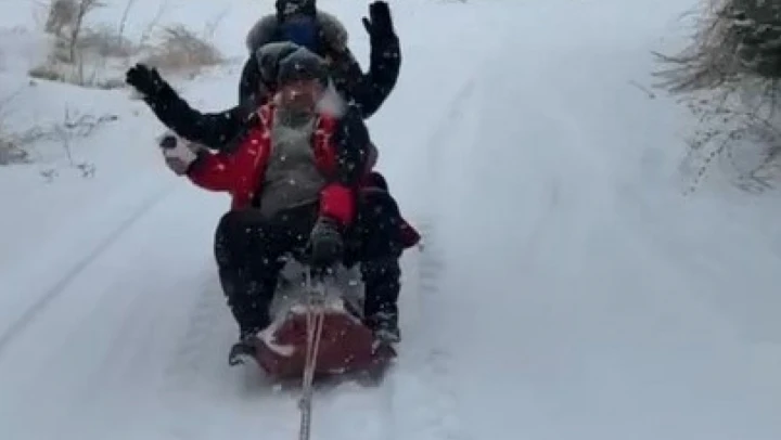 Malatya'da kent genelinde etkisini sürdüren kar yağışı, hayatı olumsuz etkiliyor. Yoğun kar yağışının etkisi altındaki kentte özellikle ulaşımda aksamalar yaşanırken Akçadağ ilçesi Kozluca Mahallesi'nde, traktör arkasına bağlanan kütük üzerinde karda sörf yapan gençler ise dakikalar süren heyecan dolu bir yolculukla karın tadını çıkardı.