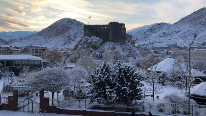 Erzurum'un Oltu ilçesinde etkili olan kar yağışı sonrası beyaz örtüyle kaplanan ilçede adeta beyaz görsel şölen oluştu.