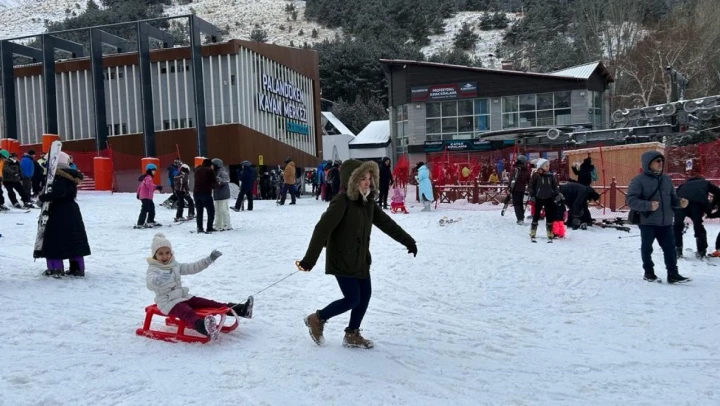 Erzurum'da yarıyıl tatiline çıkan öğrenciler Palandöken Kayak Merkezi'nde yoğunluk oluşturdu.