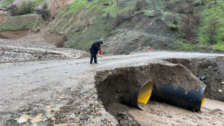 Elazığ'da etkili olan sağanak yağış nedeni ile tahrip olan yol, köprü ve menfezler onarılıyor.