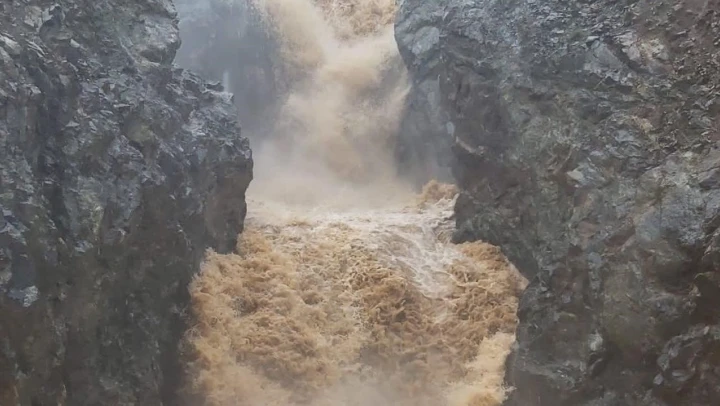 Elazığ'ın Alacakaya ilçesinde sağanak yağış nedeni ile şelalenin coşma anı kameralara yansıdı.