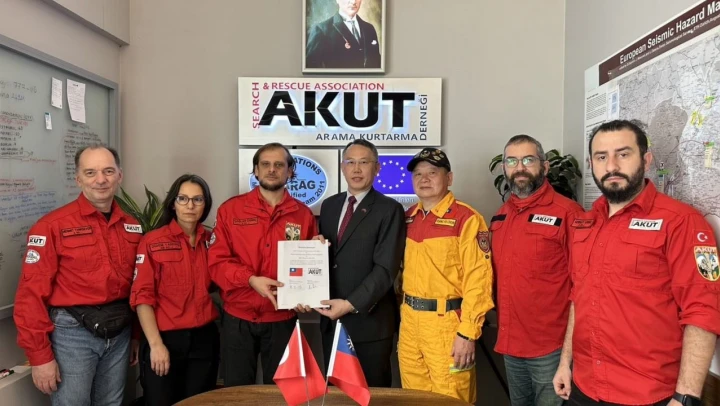 Kahramanmaraş merkezli depremlerin ardından Türkiye'ye 130 kişilik arama kurtarma ekibi gönderen Tayvan, deprem bölgesindeki çalışmalarını tamamlayarak ülkesine döndü. Ekip, ülkelerine dönerken yanlarında getirmiş oldukları kazı araçları, çadır, elektrik jeneratörleri ve tıbbi malzemelerin bulunduğu 4 tonluk ekipmanı AKUT'a bağışladı.