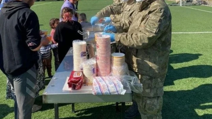 Tekirdağ'da konuşlu 8'inci Mekanize Piyade Tugay İstihkm Savaş Bölüğü personeli de, Hatay'ın İskenderun ilçesinde vatandaşlara aralıksız yemek dağıtımı yaparak sıhhi destek sağlıyor.