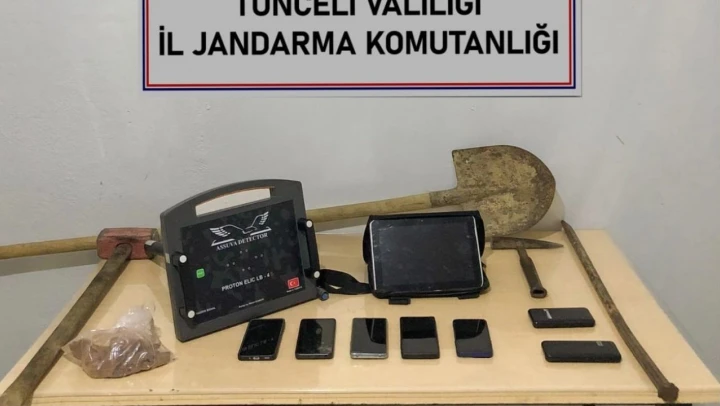 Tunceli İl Jandarma Komutanlığı kaçakçılık suçlarının önlenmesine yönelik çalışmalarını sürdürüyor. Bu çerçevede merkeze bağlı Dikenli Köyü bölgesinde teknik takip sonucu şüpheli araç ve şahıs hareketliliği tespit edildi. Ardından jandarma tarafından yapılan operasyonda Dalik Mezrası dere yatağında 5 şüpheli, suçüstü yakalandı. Olay yerinde yapılan aramada; 1 adet metal arama dedektörü, 1 adet görüntüleme tableti, 2 adet powerbank, 5 adet cep telefonu ve çeşitli kazı malzemelerinin ele geçirildiği bildirildi.
