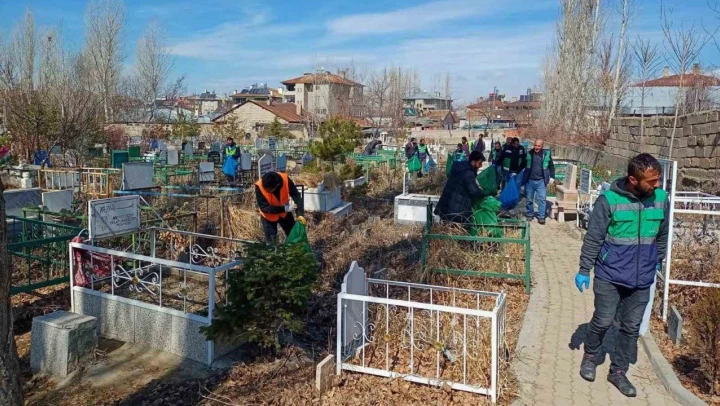 Van Büyükşehir Belediyesi havaların ısınmasıyla birlikte kent genelindeki mezarlıklarda genel temizlik çalışması başlattı.