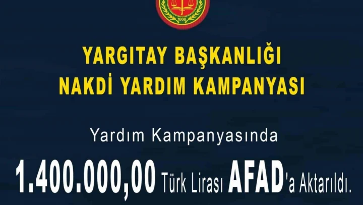 Kahramanmaraş merkezli gerçekleşen depremin ardından Yargıtay Başkanlığınca başlatılan nakdi yardım kampanyası kapsamında toplanan 1 milyon 400 bin Türk Lirası bağış AFAD'a aktarıldı.