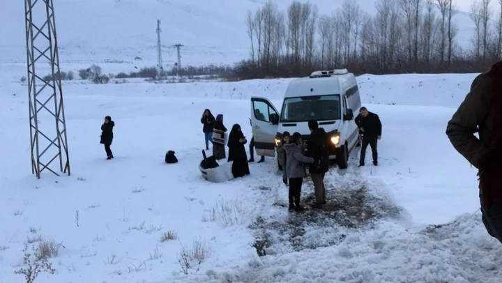 Van'ın Gürpınar ilçesinde gizli buzlanmadan dolayı yoldan çıkan minibüs savrularak kara saplandı. Yolcular büyük panik yaşarken facianın eşiğinden dönüldü.