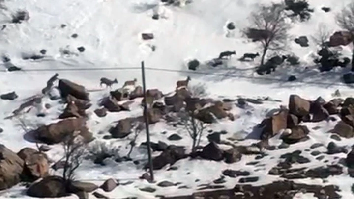 Hakkari'nin Yüksekova ilçesinde sürü halinde gezen dağ keçileri cep telefonuyla görüntülendi.
