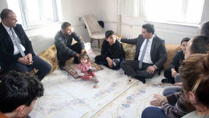 Hakkari'nin Yüksekova Milli Eğitim Müdürü Yusuf Atael ve beraberindekiler, Kahramanmaraş merkezli depremlerden etkilenerek ilçeye yerleştirilen depremzede aileleri evlerinde ziyaret etti.