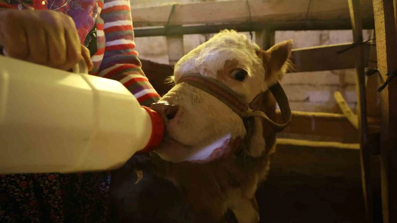 Elazığ’ın Sugözü Mahallesi’nde hayvancılıkla geçimini sağlayan İlhan Cömert’in büyükbaş hayvanı doğum yaparken öldü. Yeni doğan buzağıyı ilk başlarda soğuktan üşümesin diye evinde besleyen Cömert, bir süre sonra büyükbaş hayvanlarının bulunduğu ahıra aldı. Buzağıyı kendi çocuklarından ayırt etmeyen aile, sabah uyanır uyanmaz kendi hayvanlarından sağdıkları sütü buzağıya içirdikten sonra tımarını yapıyor. İlhan Cömert, buzağı kendini toparlayana kadar elleriyle besleyeceklerini belirtti. Cömert, "Bir ay önce buzağımızın annesi doğarken öldü. Biberonla besliyoruz. Hayvan elimizde ölmesin diye diğer hayvanlardan sağdığımız ve dışarıdan aldığımız sütle besliyoruz. Sabah kalktığımızda 3 çocuğum var, buzağıyı da bizim çocuklarımızın yerine koymuşuz. Sabah hemen koşup karnını doyuruyoruz. Sütünü verip tımarını yapıyoruz. Hayvancılığı seviyoruz ama zorlukları da çok fazla. Onu görmesek olmuyor. Buzağı bizim maskotumuz oldu" dedi.