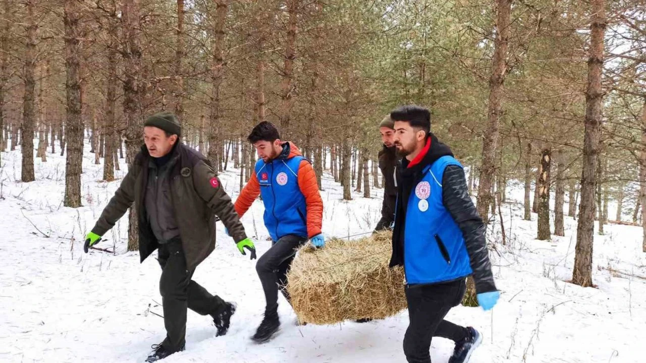 Çetin kış şartlarının hüküm sürdüğü Ardahan'da, yem bulmakta zorlanan yabani hayvanlar için yemleme çalışması yapıldı.