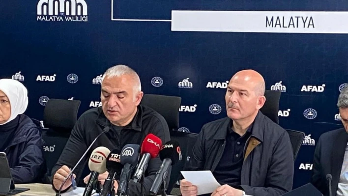 Kültür ve Turizm Bakanı Mehmet Nuri Ersoy ile İçişleri Bakanı Süleyman Soylu Malatya'da AFAD Koordinasyon Merkezinde bilgilendirme toplantısı yaptı. Toplantıda konuşan Bakan Ersoy Malatya'da enkaz kaldırma çalışmalarına yoğunlaştıklarını söyledi.