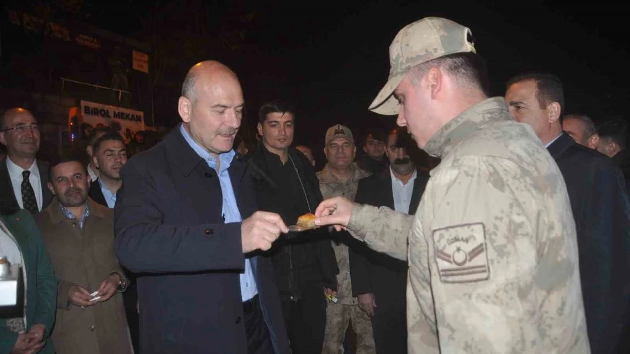 İçişleri Bakanı Süleyman Soylu, Van, Hakkari ve Yüksekova üçgeninde bulunan Yeni Köprü’de asker ve vatandaşlara tatlı ikram ederek bayramlarını kutladı.