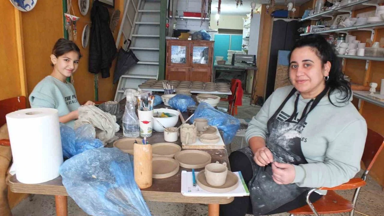 Balıkesir'de Elif Şahin, öğrencilere çini yapımını öğretiyor