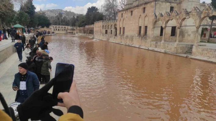 Şanlıurfa'nın simgesi olan Balıklıgöl de depremden etkilendi. Depremin ardından çamur rengini alan gölde, vatandaşlar kaybolan balıklar için yem attı.