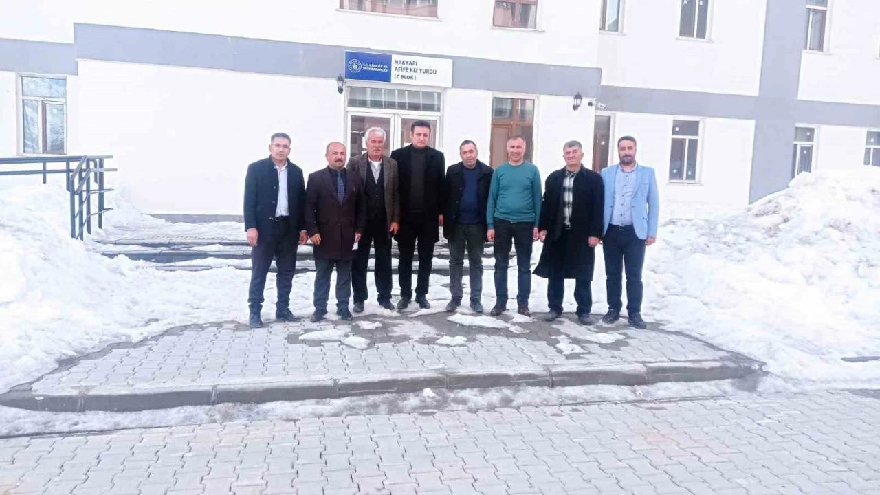 Hakkari Muhtarları Derneği Başkanı Ferdi Aksaç, beraberindeki muhtarlarla Kredi Yurtlar Kurumu (KYK) binasında kalan depremzede ailelerle bir araya geldi.