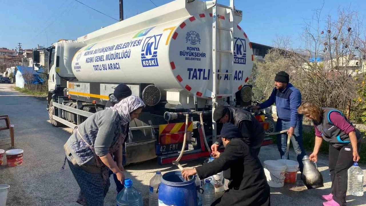 Konya Büyükşehir Belediyesi, depremin hemen ardından arama kurtarma, destek ve yardım faaliyetleri için ulaştığı Hatay’da, sağlıklı içme ve kullanma suyu ihtiyacına da çözüm üretiyor. Depremin ilk gününden itibaren ekiplerini afet bölgesine sevk eden Konya Büyükşehir Belediyesinin ilçe belediyeleri ile birlikte 624 araç, 2 bin 51 personel ve 134 jeneratörle çalışmalarını sürdürüyor. Depremin ilk gününden bu yana Hatay’da bulunan Konya Büyükşehir Belediye Başkanı Uğur İbrahim Altay, Konya Büyükşehir arama-kurtarma ekiplerinin depremin 103. saatine kadar 163 kişiyi enkazdan canlı kurtardığını söyledi. Mobil mutfak, ekmek fırını, mobil haberleşme, temiz su temini, enerji ihtiyacı, yardımların dağıtımı gibi çalışmalarla depremden zarar gören insanlara destek olduklarını kaydeden Başkan Altay, "Hatay’ın su sorununu çözmek için de Konya Su ve Kanalizasyon İdaresi (KOSKİ) ekiplerimiz çalışmalar yapıyor. Yer altı sisteminde patlakları tek tek belirleyip onarıyoruz. Depremden zarar gören vatandaşlarımıza su vermek için aralıksız çalışıyoruz. Hatay’da içme suyu isale hatları, içme suyu şebekesi ve içme suyu tesislerinin bakımı ve onarımı için gayret ediyoruz. Kuyuları çalıştırdık, ihtiyaç olan bölgelere gücümüz yettiğince temiz su sağlıyoruz. İlgili kurumlarla sürekli olarak koordinasyon halinde olan KOSKİ ekiplerimiz, elektrik enerji ihtiyacına büyük ölçüde çözüm bulurken; hasar görmeyen bölgelerin de yüzde 35 oranında su sorununu çözdü. Burada bir damla su çok değerli. Birlikte olursak başarırız" ifadelerine yer verdi.