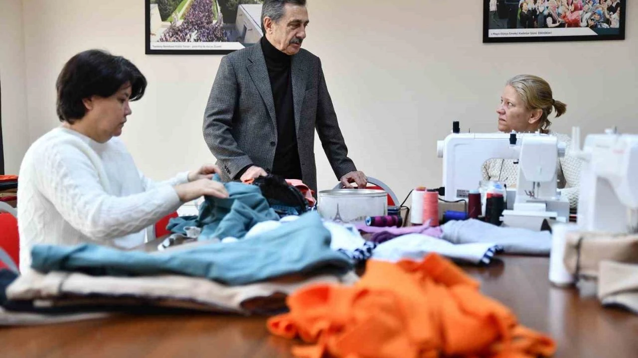Tepebaşı Belediye Başkanı Dt. Ahmet Ataç, depremzedelere destek olmak amacıyla kıyafet diken belde evi kursiyerlerini ziyaret etti.
