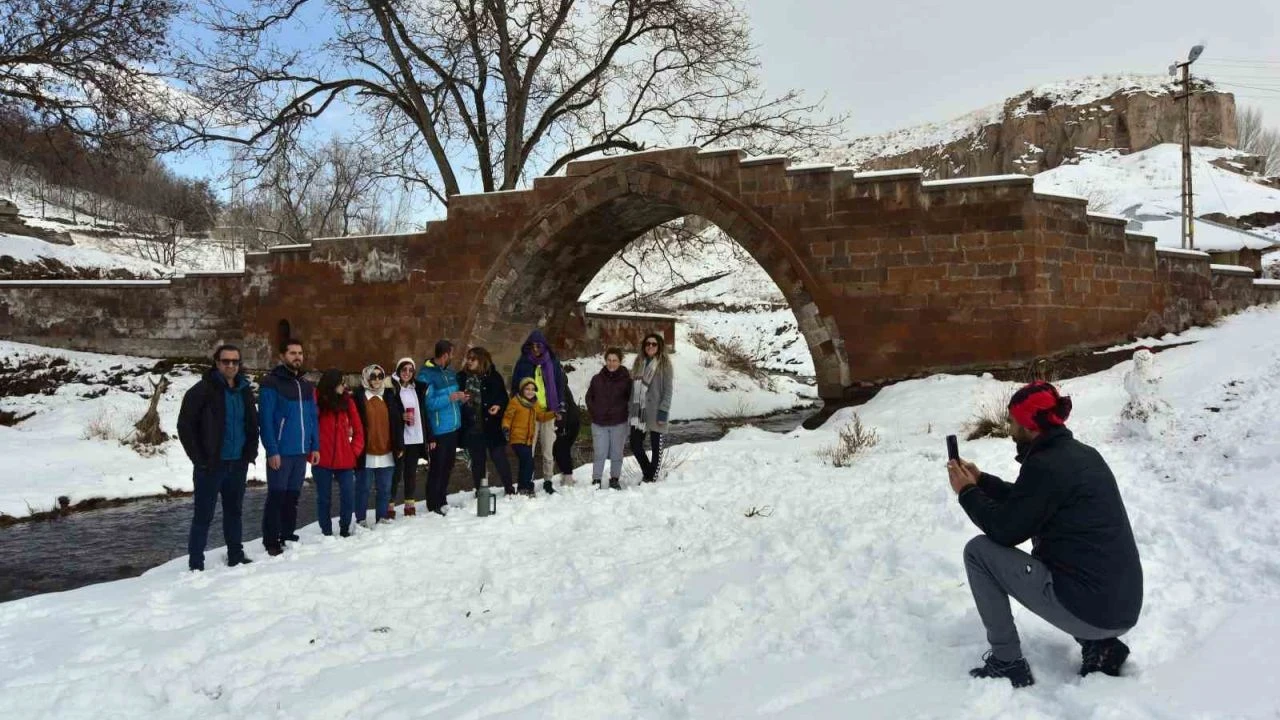 Uzun zamandır sabırsızlıkla beklenen kar yağışı Doğu Anadolu Bölgesinde etkili olmaya başladı. Kar yağışının olmadığı illerden biri olan Batman’da yaşayan vatandaşlar, kar yağışının etkili olduğu Bitlis’in Ahlat ilçesine gelerek kartopu oynayarak kardan adam yaptı. Yaptıkları bir tur programıyla kar yağışının etkili olduğu doğu illerini gezen Batmanlı gezgin grubu, ilk durak olarak kar yağışının etkili olduğu Ahlat ilçesine geldi. Ahlat ilçesinde karla bütünleşen mekanları gezen grup, Harabeşehir Mahallesi’nde bulunan Emir Bayındır Köprüsü’nün önünde kartopu oynayıp kardan adam yaparak gönüllerince eğlendi.