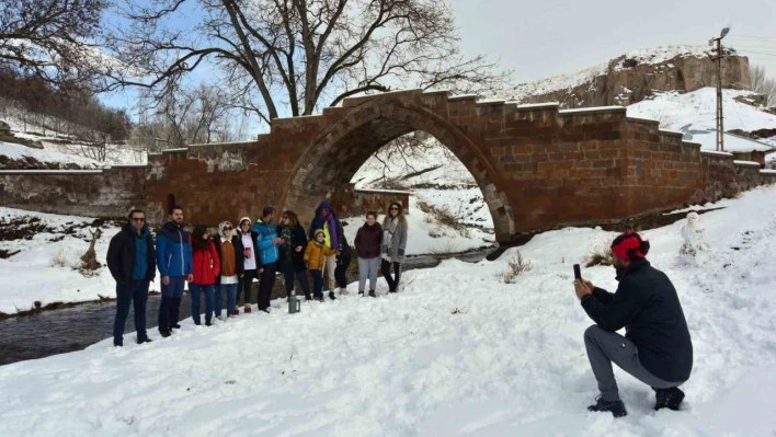 Batman'dan Bitlis'in Ahlat ilçesine gelen gezgin grubu yağan karın sefasını sürdü.